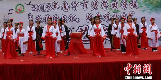 这所名为“南宁市碧翠园学校”的九年一贯制学校,意欲在全校大力开展硬笔书法教学,使中国优秀传统文化走进青少年心田。南宁市碧翠园学校校长蒙谊强11日在接受中新网记者采访时表示,除大力加强书法教学外,该校还在义务教育中融入国学教学。目前,该校设有5个兼融国学教育的班级,约250名学生,以华夏文明始祖伏羲命名为“伏羲班”。
