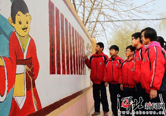 河北平乡县第四中学手绘传统文化墙吸引孩子目光