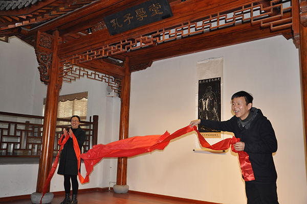 在古朴的校园礼堂内,山东曲阜孔子学苑创始人、丰士小学知名校友朱正耀先生在海宁市教育局有关负责人的陪同下,为母校“孔子学堂”揭牌。朱正耀等当场赠送丰士中心小学“孔子学堂”牌匾及近4000册的传统文化经典书籍。