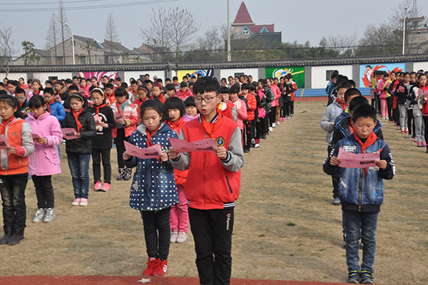 3月14日下午,在拥有113年建校历史的海宁市盐官镇丰士小学大礼堂里,近千名师生齐聚一堂,一起诵读,场面十分壮观。原来,这天是丰士中心小学孔子学堂成立暨经典诵读启动仪式。