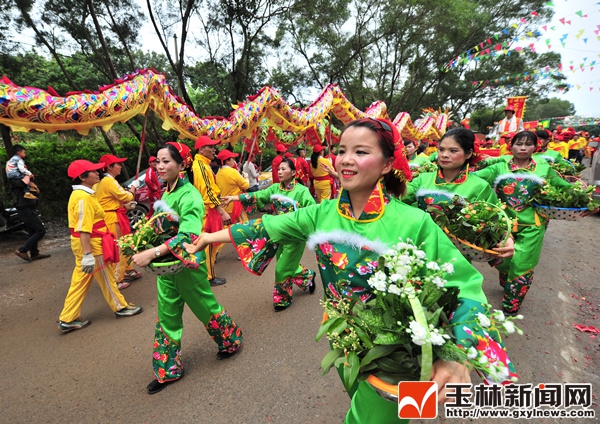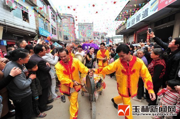 玉林新闻网-玉林日报讯 (记者 陈伟平)3月18日,兴业县蒲塘镇各条街道张灯结彩,彩旗飘扬,第十七届寒山诞民间传统文化节在蒲塘镇街头盛大开演。