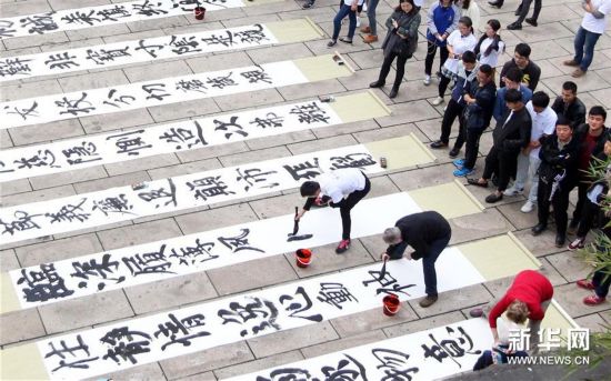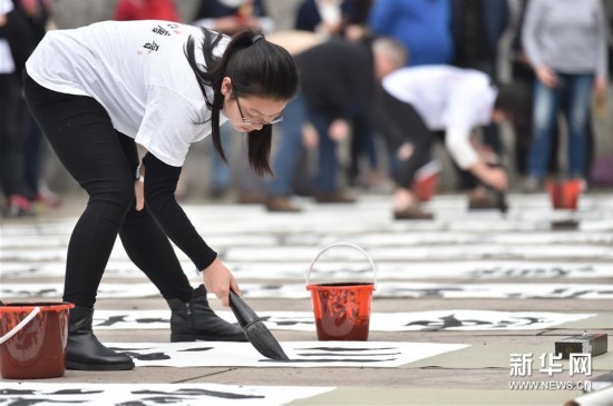 2016年4月5日,浙江绍兴文理学院的师生和瑞士日内瓦大学书法研修团的学员们一起书写国学经典《千字文》,以此交流书法学习心得和传承中国优秀文化。这是绍兴文理学院兰亭书法艺术学院“四季兰亭”系列活动之一。