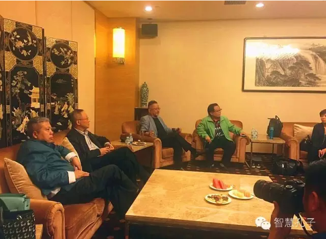 中国孔子基金会传统文化教育分会会长李长明先生(中间)在新闻发布会现场
