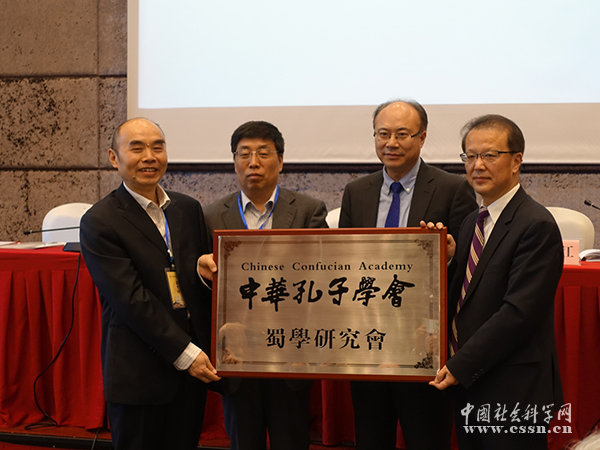 王中江、向宝云、晏世经、舒大刚共同揭牌“中华孔子学会·蜀学研究会”。全国儒学社团联席会议秘书长、浙江省儒学学会执行会长、浙江省社科院研究员吴光,四川省朱熹研究会会长、四川师范大学教授蔡方鹿,湖南大学岳麓书院院长肖永明教授,中华孔子学会董仲舒研究会会长、上海交通大学教授余治平等致贺词。中华孔子学会·蜀学研究会会长舒大刚发言,表示本会旨在“绍先哲,起蜀学;明体用,启新知”,将联合国内外有志于继承和弘扬巴蜀文化、巴蜀学术的有识之士,整理蜀学文献,研究巴蜀学术,进而发扬以儒学为主干的中华优秀传统文化。