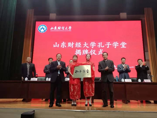 11月13日上午,山东财经大学孔子学堂揭牌仪式在山东财大莱芜校区举行。山东财经大学党委副书记赵友春,中国孔子基金会秘书处二级巡视员康承宝,山东省政府办公厅一级调研员、山东省大舜文化研究会副秘书长、孔子学堂特聘专家赵志刚,山东财经大学商经学院全体班子成员,以及广大师生等参加了此次活动。