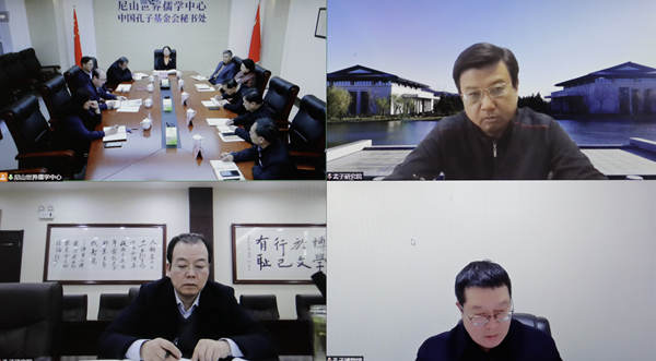 会议强调,要结合儒学中心的工作实际,深入学习习近平总书记的重要讲话精神,坚持马克思主义的基本立场、基本观点、基本方法,充分理解习近平新时代中国特色社会主义思想中蕴含的儒家思想,广泛开展各类儒学学术研究,做好“两结合”的文章。要加强人才队伍建设,利用好分中心、研究基地的资源优势,发挥儒学中心理事会、学术委员会的积极作用,出台人才高地的建设意见,建设一支高素质的研究专家队伍。要脚踏实地做大做强基金,加大资金募集力度,为儒学中心高质量发展提供强有力的物质保障。要加强党建引领,完善法人治理结构,建章立制,规范儒学中心理事会章程、基金会章程,推动儒学中心规范化建设。要开展多种形式的交流活动,讲好中国故事,加强与国际儒联的合作,搭建国际交流合作高端平台,提高中华文化的国际传播力。要真正把理论学习成果体现到深入贯彻落实党的路线方针政策的实际行动上,体现到深入贯彻落实习近平总书记视察山东重要讲话精神的实际行动上,推动“两个结合”“两创”落实落地,为实现了“十四五”良好开局贡献力量。