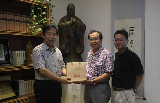 座谈结束时,牛廷涛代表中国孔子基金会向忠信中学赠送了2套国学书籍。