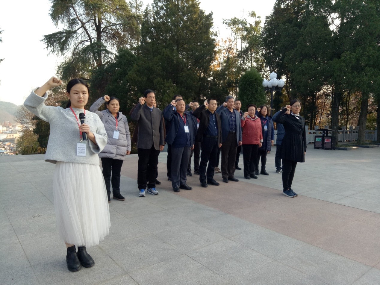 参训人员在“燎原星火”革命烈士纪念塔前重温入党誓词