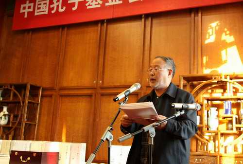 中国孔子基金会成立近三十年来,围绕立会宗旨,通过募集基金,在组织和推动孔子、儒学及中华传统文化整理研究、传播普及、对外交流、文化产业发展方面做了大量的工作,得到海内外一致好评。中国孔子基金会是面向全社会提供公益文化服务的平台,我们的工作既需要得到社会各界的支持,又要全心全意地回馈和服务社会大众。今天古风先生和《蒙学十三经》编委会向我会捐赠活动,再一次说明以孔子为代表的中华优秀传统文化正在被越来越多的人所接受、认同和传承,而且正逐步成为企业界、文化艺术界和社会各界的一种文化自信和文化自觉,这一行动有助于唤起更多的人加入到弘扬中华优秀文化队伍中来,为实现伟大的中国梦汇聚力量。