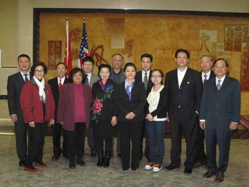 2月14日,中国驻休斯敦总领事许尔文在总领馆办公楼会见以中国孔子基金会文化大使徐国静为团长的“孔子文化世界行”代表团。