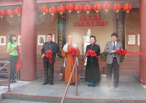 在年画展的剪彩仪式上,净海法师致辞时说:“玉佛寺是佛教的道场,也是传播中国文化的道场,通过举办中国年画展,让更多的美国人了解中国文化,让更多华侨在这里找到回家过年的感觉。”