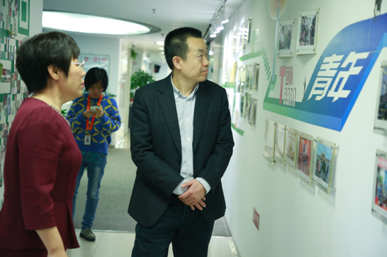 在团中央网络影视中心党委成员、副主任蔺玉红同志陪同下,刘爱军同志参观了团中央网络影视中心、“青年之声”综合服务办公室、中国青年网,并听取了“青年之声”互动社交平台建设发展的有关情况。