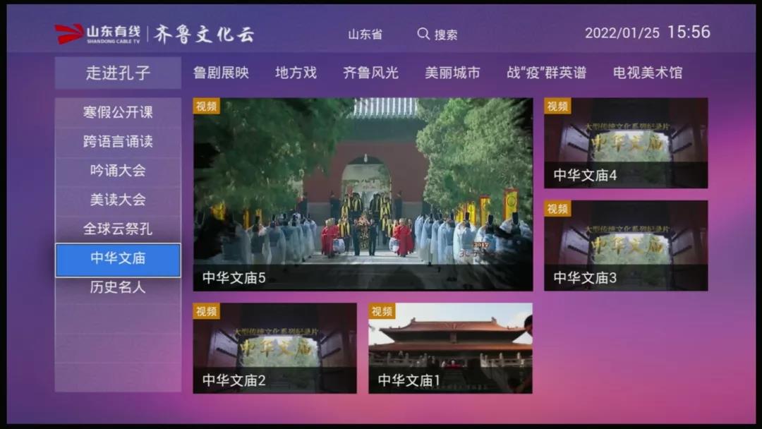 《走进孔子》公益栏目上线的宽带电视平台“享TV”,是山东有线电视研发推出的全新一代智能平台产品。承载直播、点播、4K超高清、VR、智能语音、多屏互动等音视频服务,可以最大化地满足用户收视需求。目前,《走进孔子》公益栏目已上线《寒假公开课》《跨语言诵读》《吟诵大会》《美读大会》《全球云祭孔》《中华文庙》《历史名人》七个专栏内容,各专栏主题内容丰富,节目形式新颖生动,充分展现了中华优秀传统文化的独特魅力。《走进孔子》公益栏目入驻山东有线电视,将为视听传播平台注入传统文化时代元素,树立电视传播儒学声音的新平台、新典范。