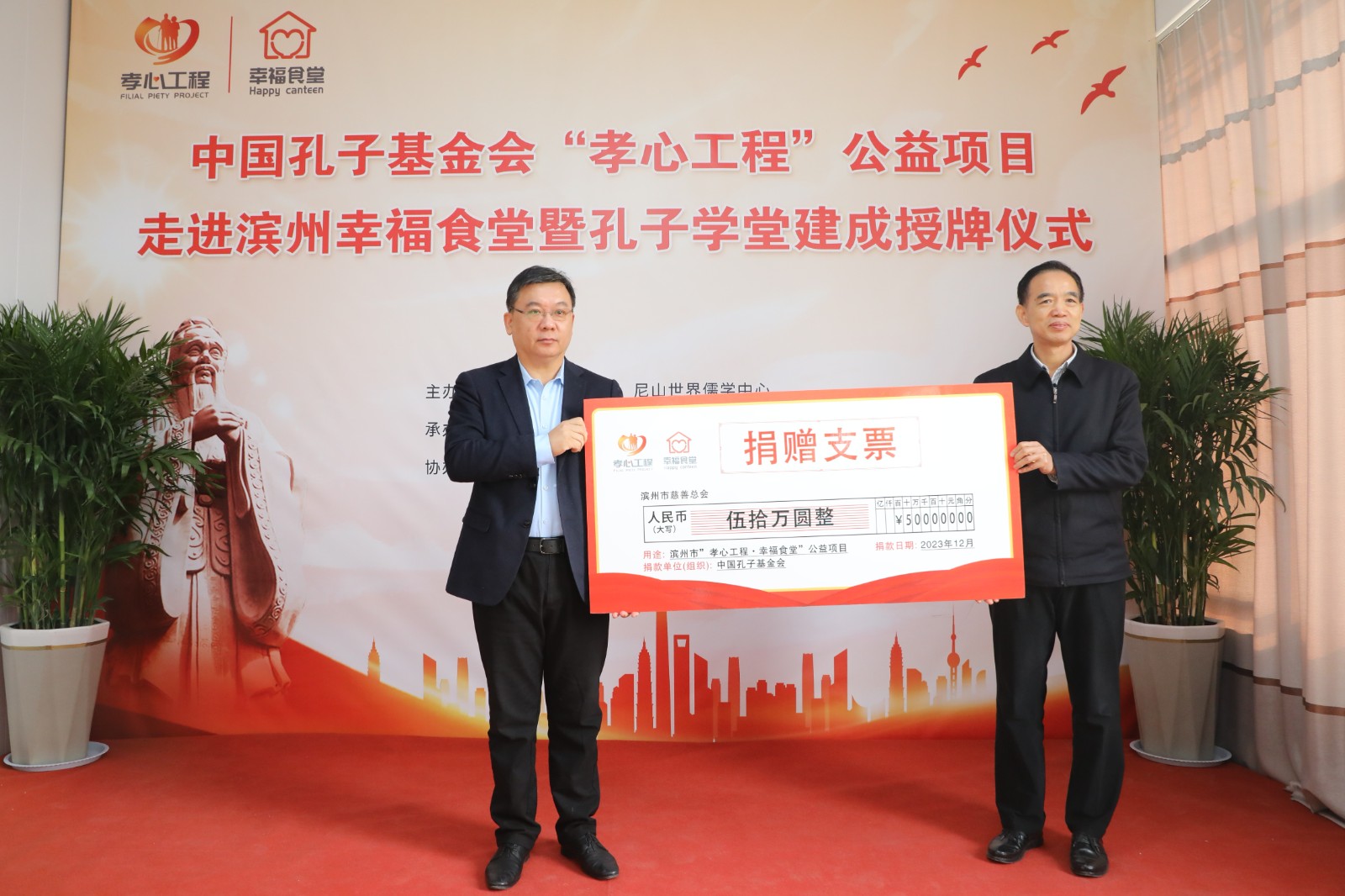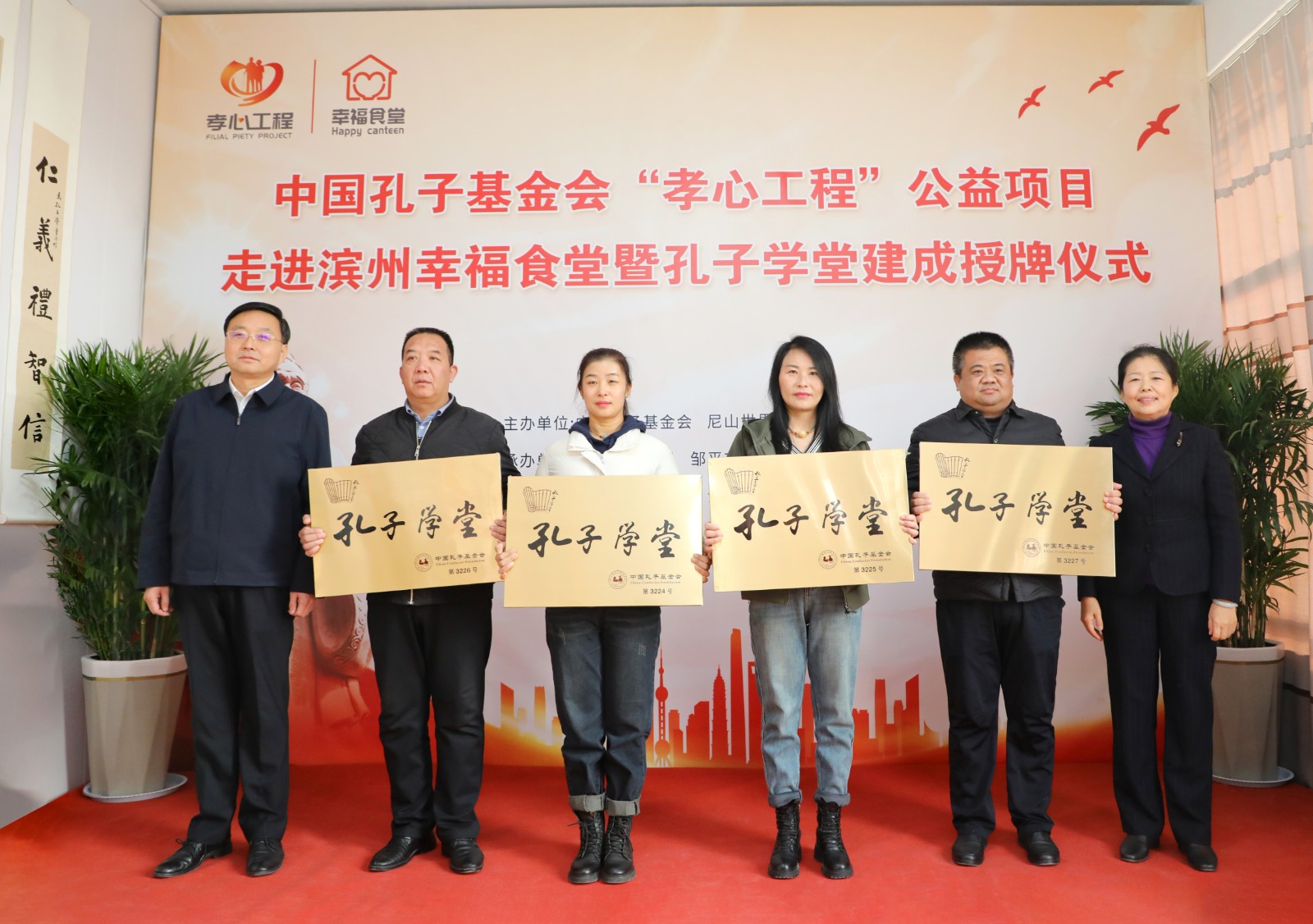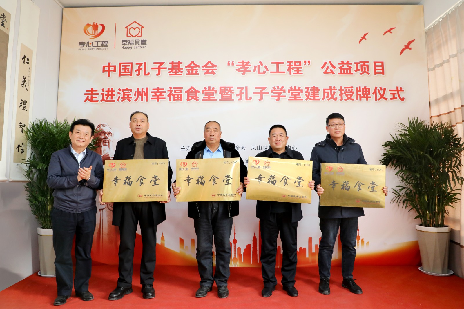 12月27日,中国孔子基金会“孝心工程”公益项目走进滨州幸福食堂暨孔子学堂建成授牌仪式在邹平市举行。山东省人大常委会原党组书记、副主任,中国孔子基金会理事长于晓明出席活动,并为16家幸福食堂代表授牌。