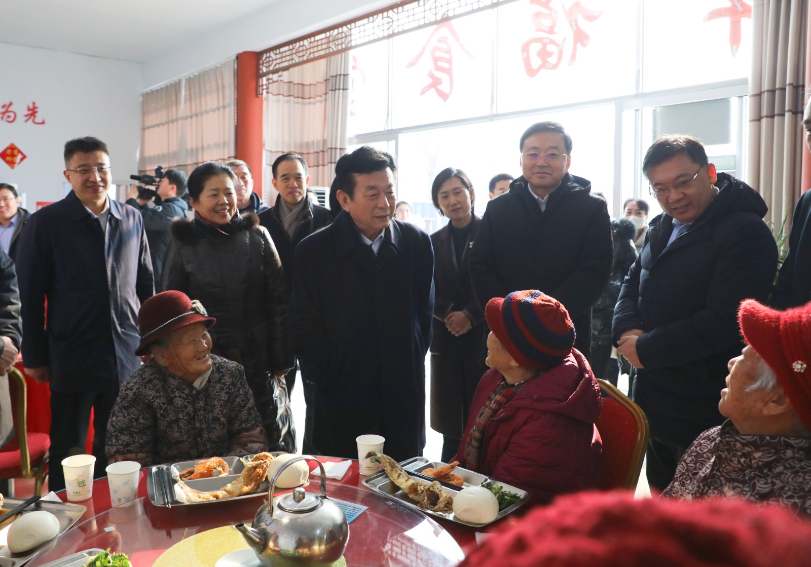 仪式结束后,与会领导嘉宾参观幸福食堂。正值午餐时间,食堂里坐满了前来就餐的老人,于晓明一行与老人们亲切交谈,了解老人的生活状况、食堂的饭菜质量等情况。
