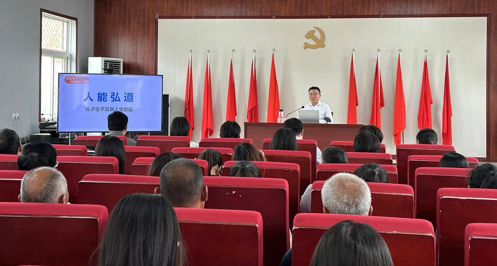 米怀勇为香赵庄镇南邢庄村孔子学堂、田庄乡西滕庄村孔子学堂授牌,并赠送传统文化书籍。中国孔子基金会孔子学堂特约讲师翟法礼以“孔子生平及其人生态度”为题进行现场授课,深入浅出地阐释了儒家思想的核心观点。