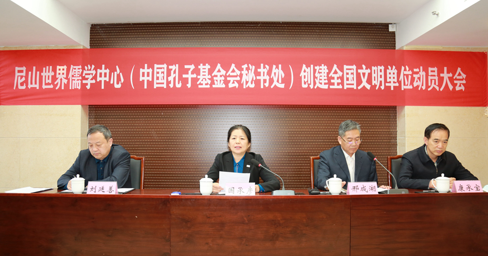 会议宣读了《中共尼山世界儒学中心(中国孔子基金会秘书处)委员会关于创建全国文明单位的意见》。为确保创建任务责任到人、落实到位、层层压实,国承彦与各部室负责人现场签订责任书。