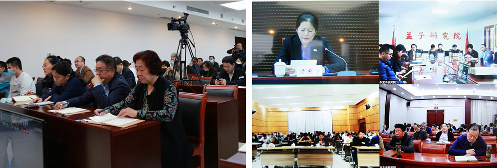会议采取视频形式召开,中心各部室人员在主会场参加会议,孔子研究院、孔子博物馆、孟子研究院设分会场。