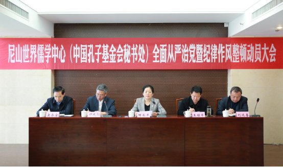会议传达了十九届中央纪委五次全会及省纪委十一届六次全会精神,下发了《关于在尼山世界儒学中心(中国孔子基金会秘书处)开展纪律作风专项整治的实施方案》,对中心开展全面从严治党暨纪律作风整顿工作进行部署。尼山世界儒学中心(中国孔子基金会秘书处)党委书记、副主任国承彦作动员讲话,省纪委监委驻省委宣传部纪检监察组副组长王维军到会指导。