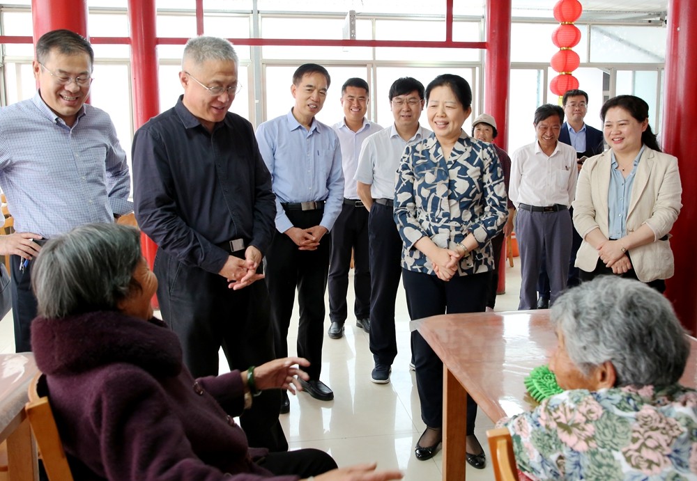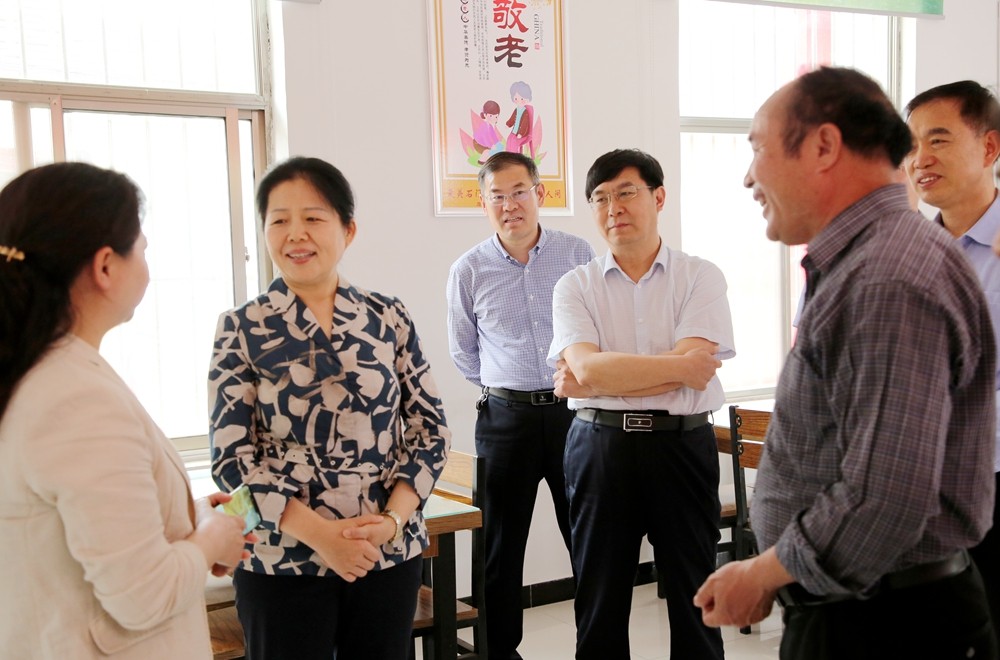 国承彦一行先后来到石门山镇西焦沟村、董庄北村“幸福食堂”,实地察看了厨房、餐厅、休息室等硬件设施使用情况,详细了解饮食搭配、住宿条件、老年人生活状态等。国承彦与老年人亲切交流,倾听就餐老人自编自唱的“幸福之歌”,并就食堂开办运营、日常管理、机制建设等具体问题与当地负责人进行深入探讨。