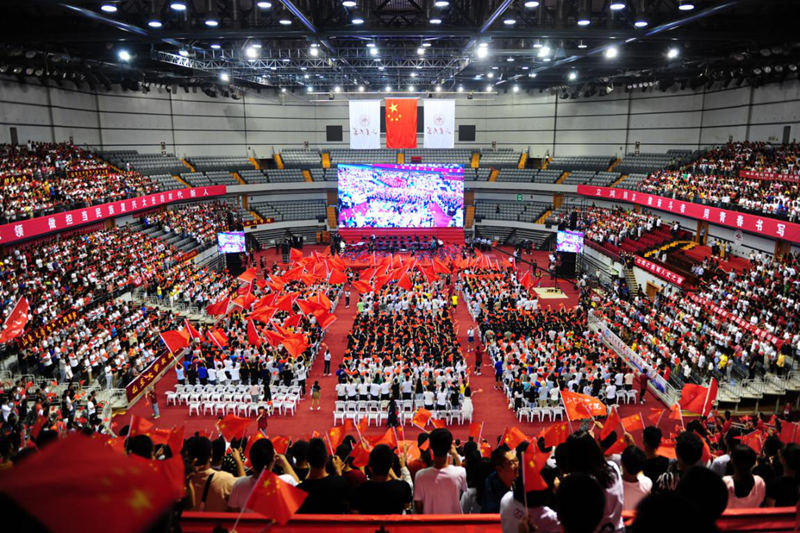 7000余名中国石油大学(华东)师生唱响赞歌(孙萌/摄)