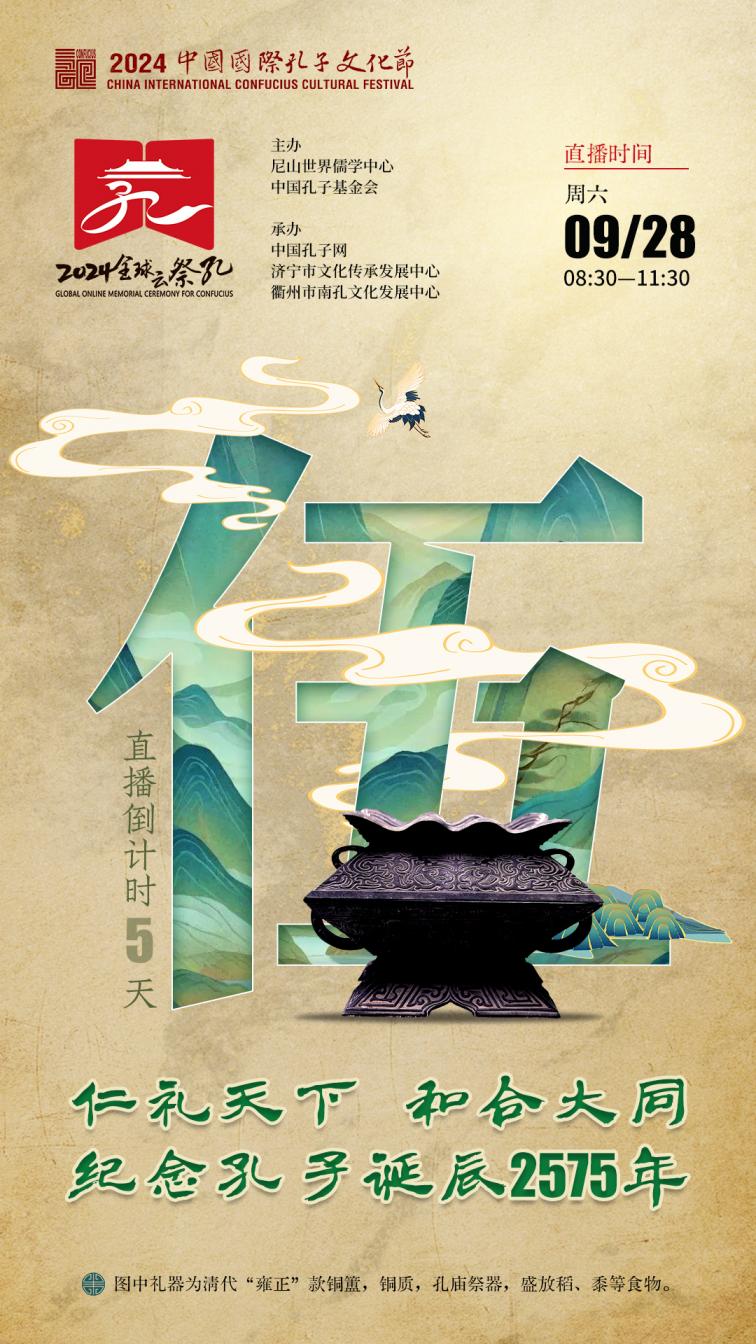 9月28日上午8:30,2024全球“云祭孔”大型网络直播活动将联动海内外60余家孔庙、文庙、书院和文化社团机构,100余家海内外媒体平台共同参与,历时3个小时,面向全球华人直播海内外祭孔盛况。