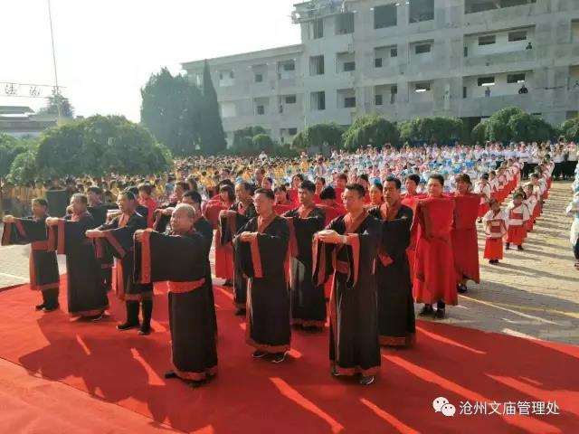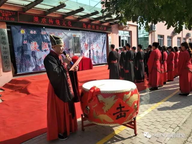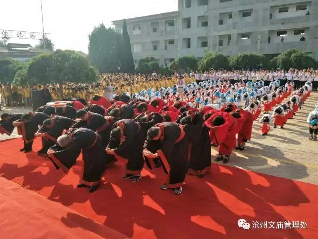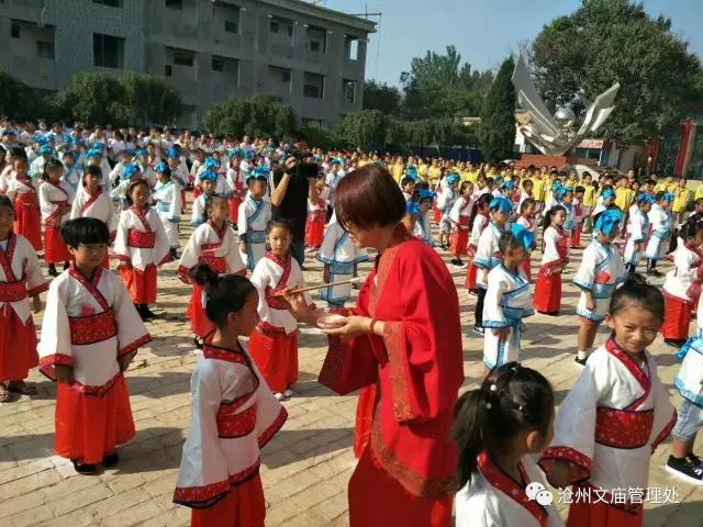 9月12日上午,沧州文庙“传统文化进校园·拜师礼”活动走进百年小学——沧县兴济镇小学,旨在让中华优秀传统文化浸润每一个孩子的心灵,教会孩子尊敬师长、读书做人的道理。